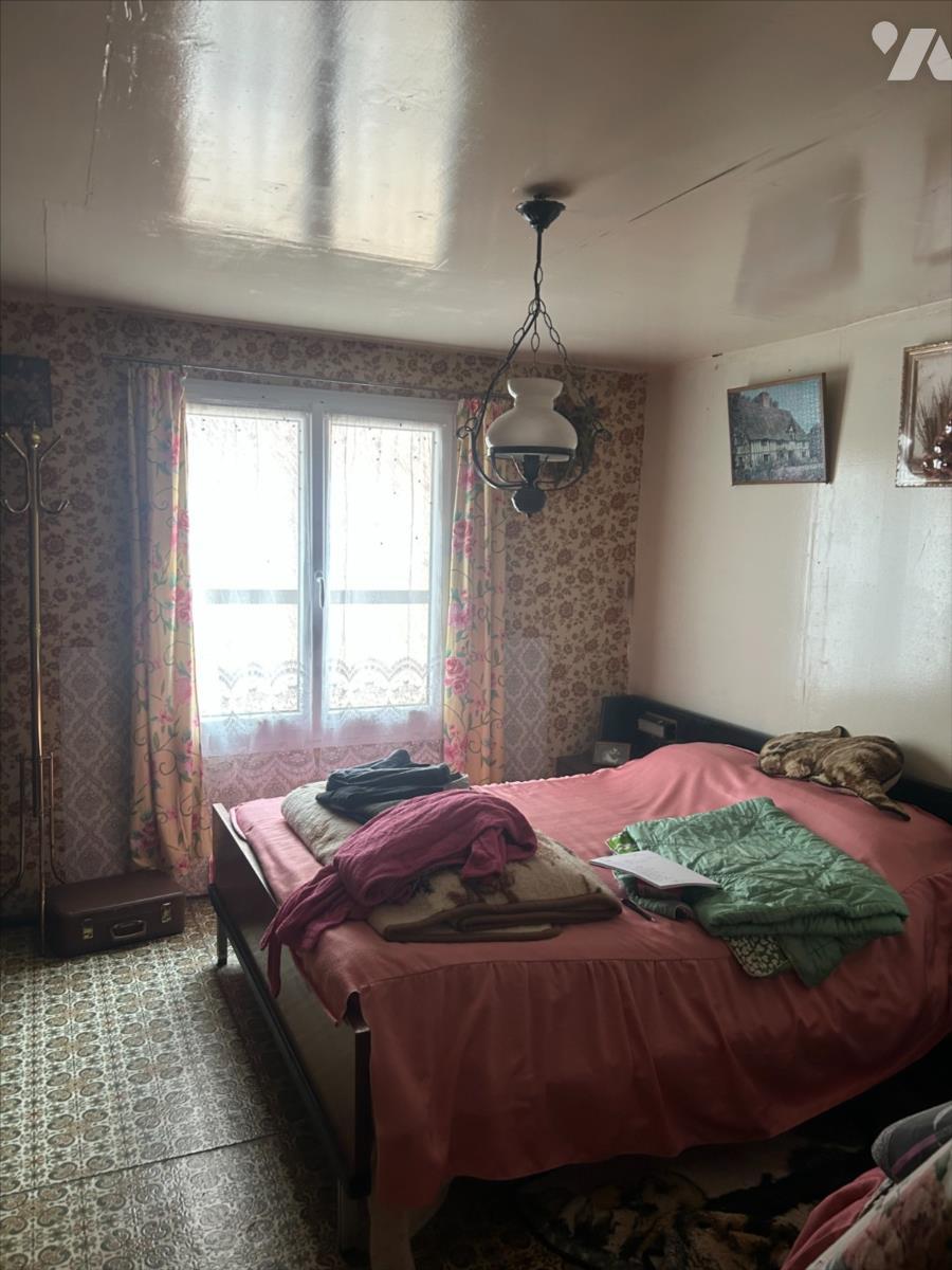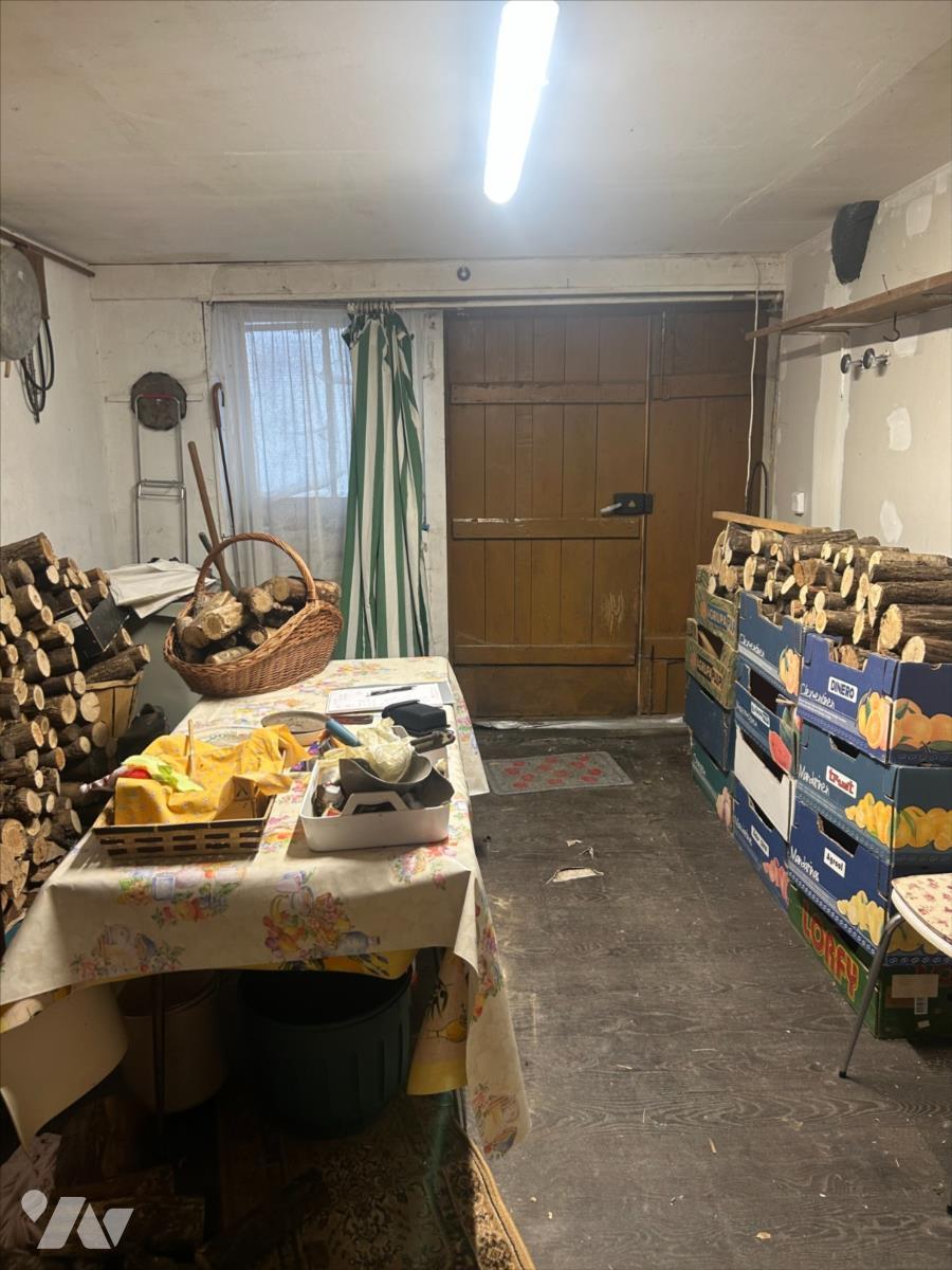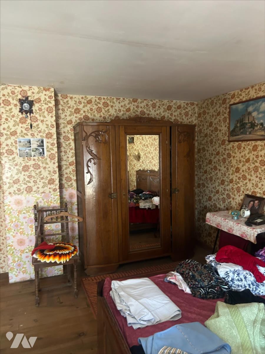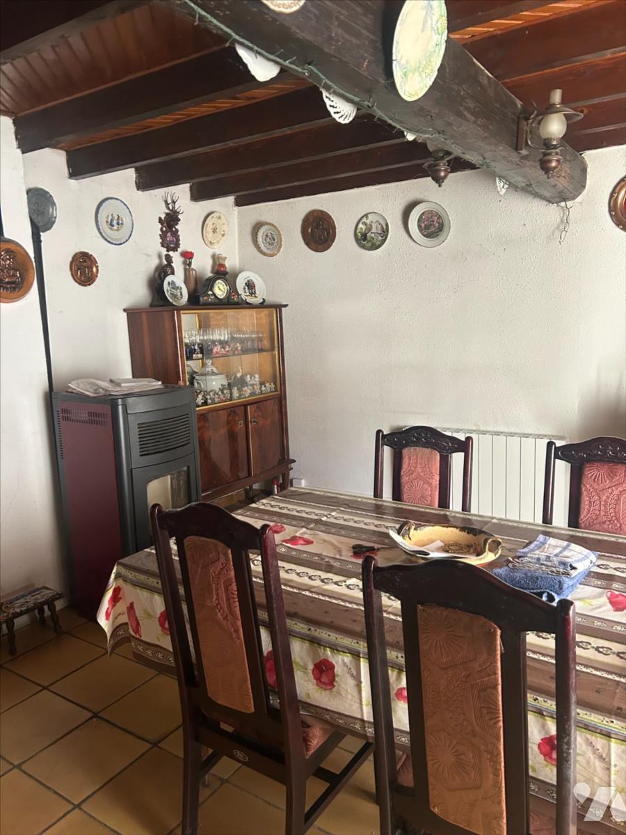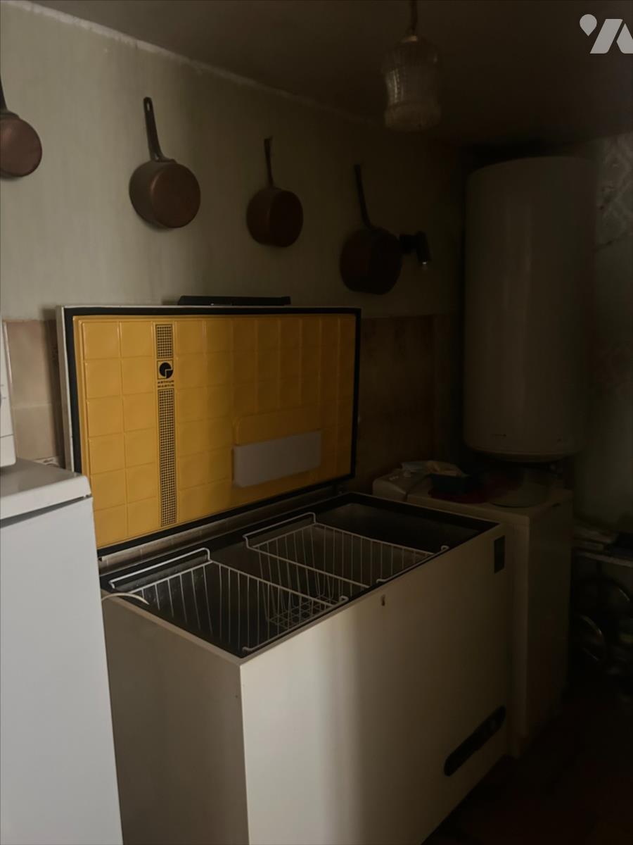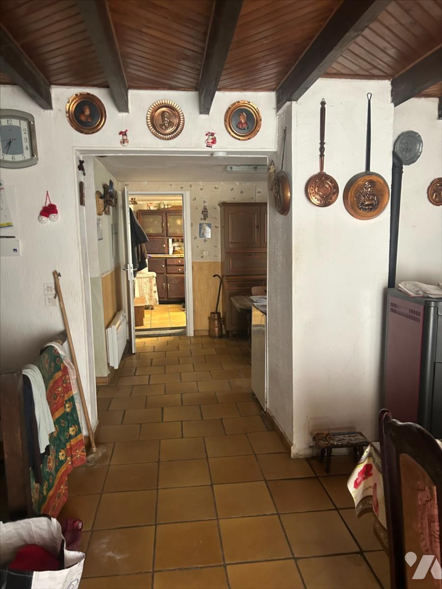 Maison de village, sans terrain et garage, Elle se compose: RDC: entrée, cuisine, salle d'eau avec WC, cuisine avec gazinière bois, séjour avec poêle, une cave, cellier, une pièce, A l'étage: dégagement, deux chambres, placard, grenier, (double vitrage).